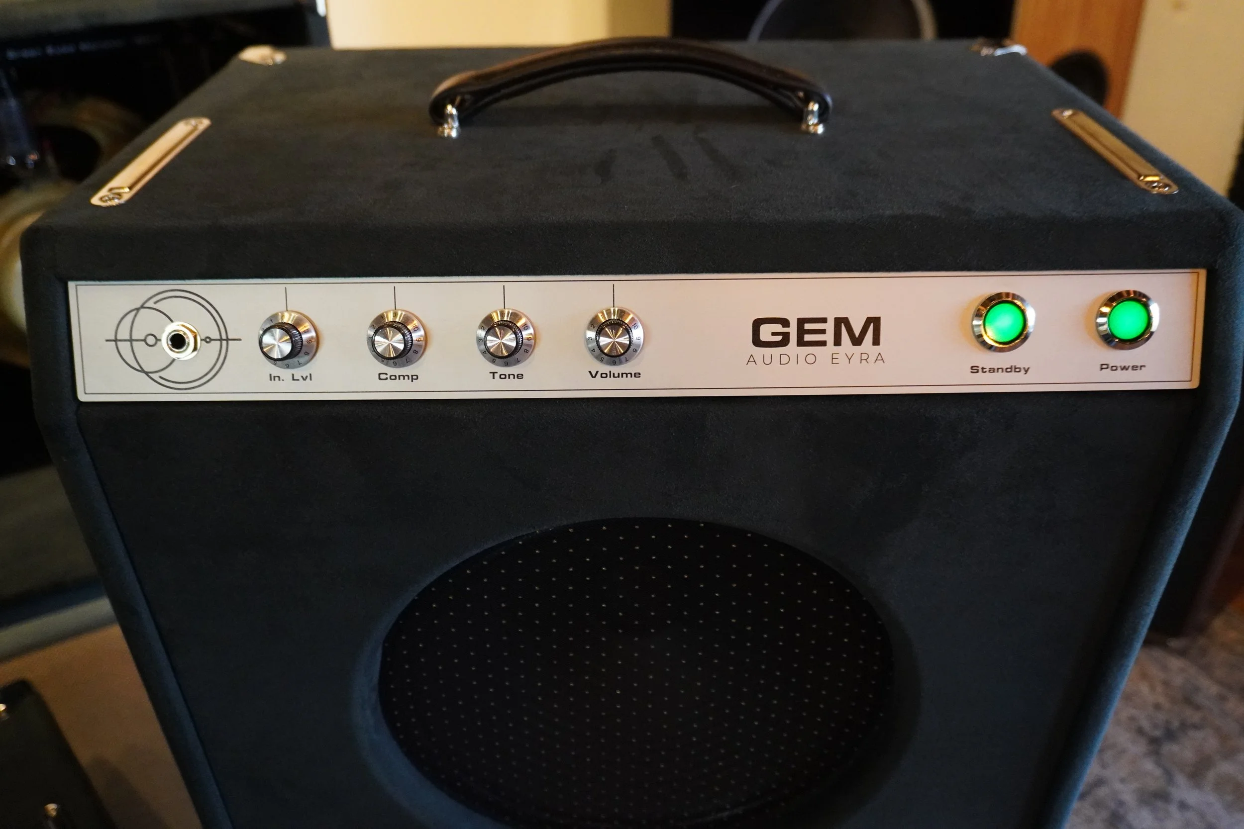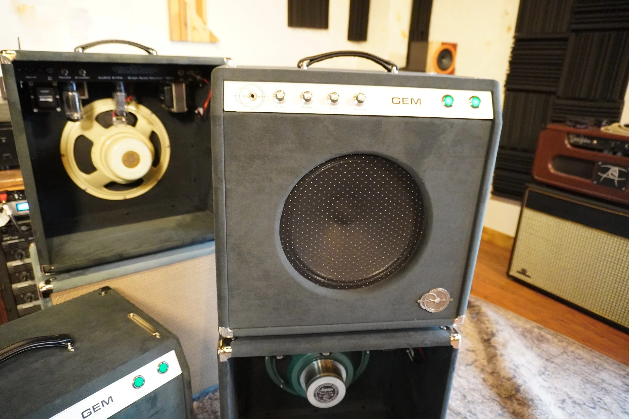 Our little, unconventional, Green-Eyed Monster. This started as a very limited concept designed and built around the 15” EV SRO. Only four were produced as 15” combos. However, with the anticipated arrival of our very own 12” Alnico Sugarcone, we are offering (in small batches) this GEM in a powerful and robust 12” combo. Covered in suede, this open-back combo is as beautiful as it sounds.